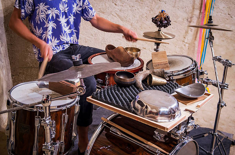 En solo Vincent Roussel envisage la batterie et les percussions comme un ensemble sensible et modulaire - qu'elles soient paroles, rythmes, textures ou bruits - dans une perspective musicale mais aussi performative. Son vocabulaire est attentif aux gestes, aux accidents, aux silences et aux dynamiques.